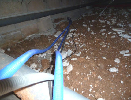 Les tubes multicouche gainés, le câble électrique 12v et le câble réseau pour les sondes